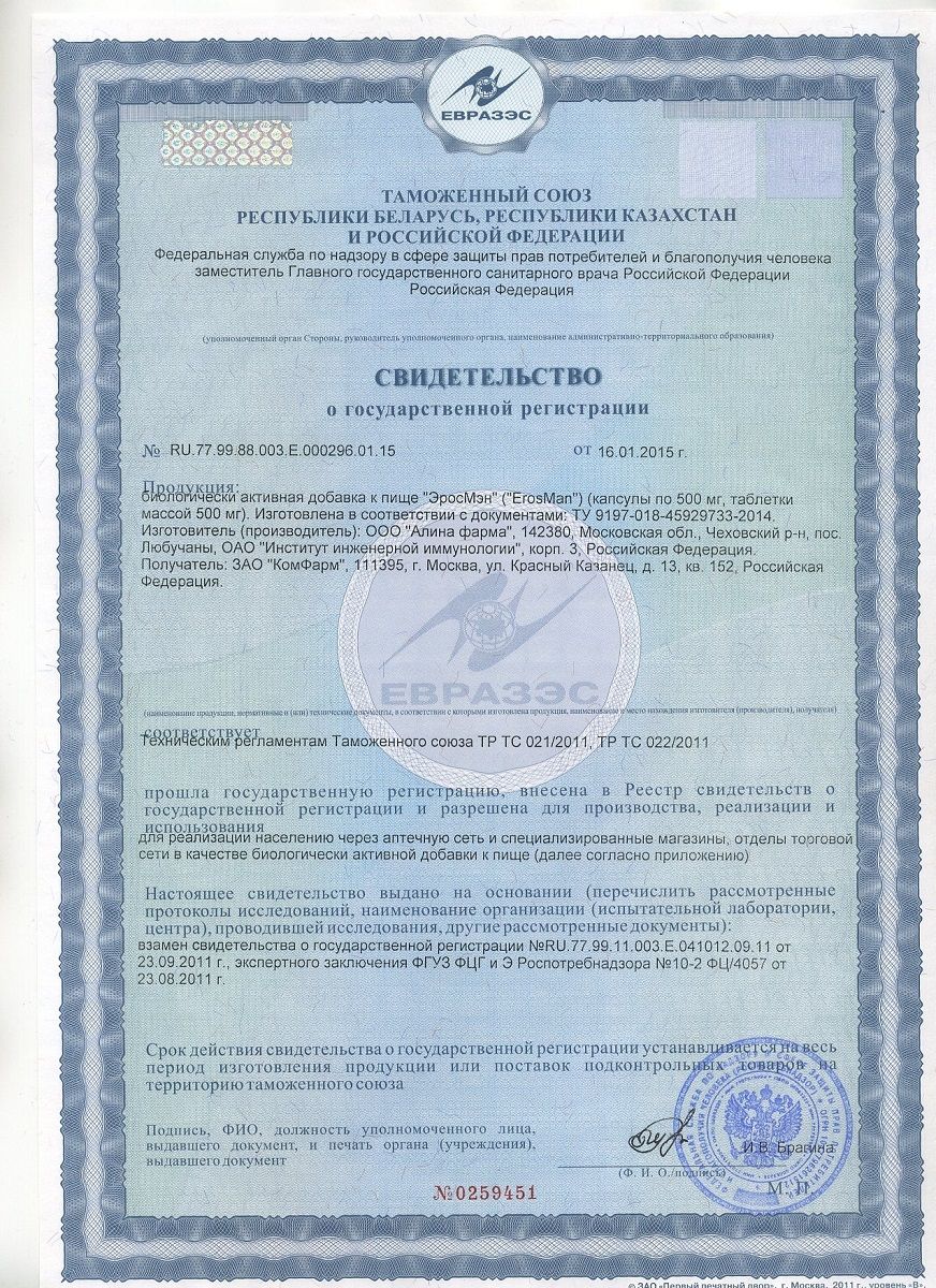 Купить БАД для мужчин ЭросМэн - 30 капсул (500 мг.) КомФарм по лучшей цене с доставкой - секс-шоп Ynunu.ru