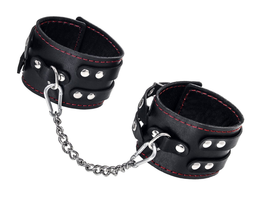 Купить Черные кожаные оковы с двумя ремнями и контрастной строчкой Pecado по лучшей цене с доставкой - секс-шоп Ynunu.ru
