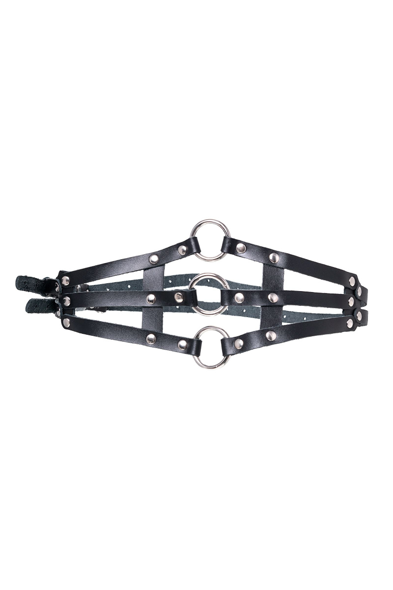 Купить Черный кожаный пояс с кольцами по лучшей цене с доставкой - секс-шоп Ynunu.ru