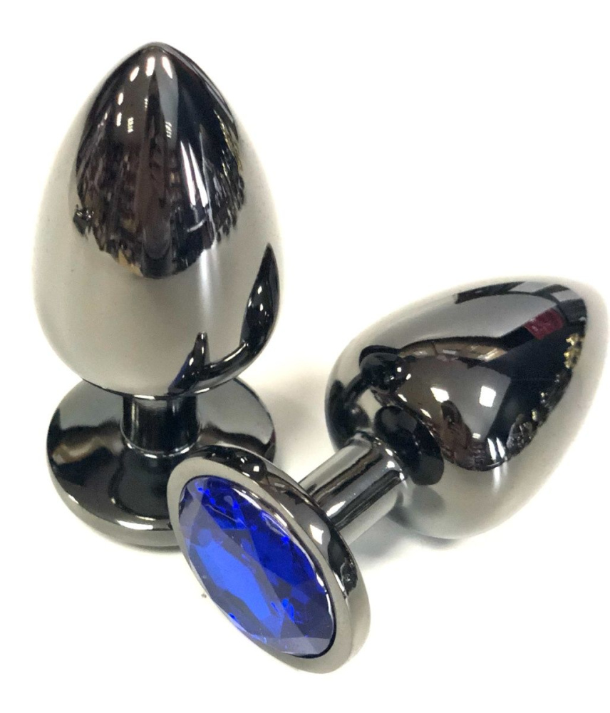 Купить Черная металлическая анальная пробка с синим стразом - 9 см. Vandersex по лучшей цене с доставкой - секс-шоп Ynunu.ru