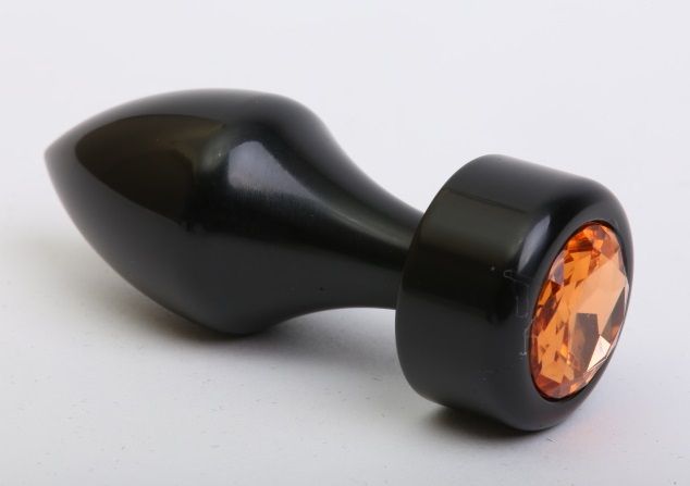 Купить Чёрная анальная пробка с широким основанием и жёлтым кристаллом - 7,8 см. 4sexdreaM по лучшей цене с доставкой - секс-шоп Ynunu.ru