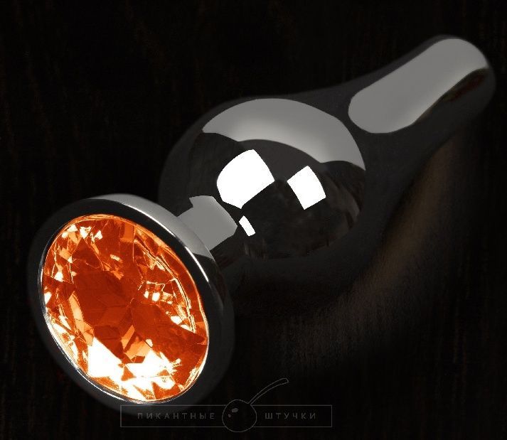 Купить Графитовая удлиненная анальная пробка с оранжевым кристаллом - 12 см. Пикантные штучки по лучшей цене с доставкой - секс-шоп Ynunu.ru