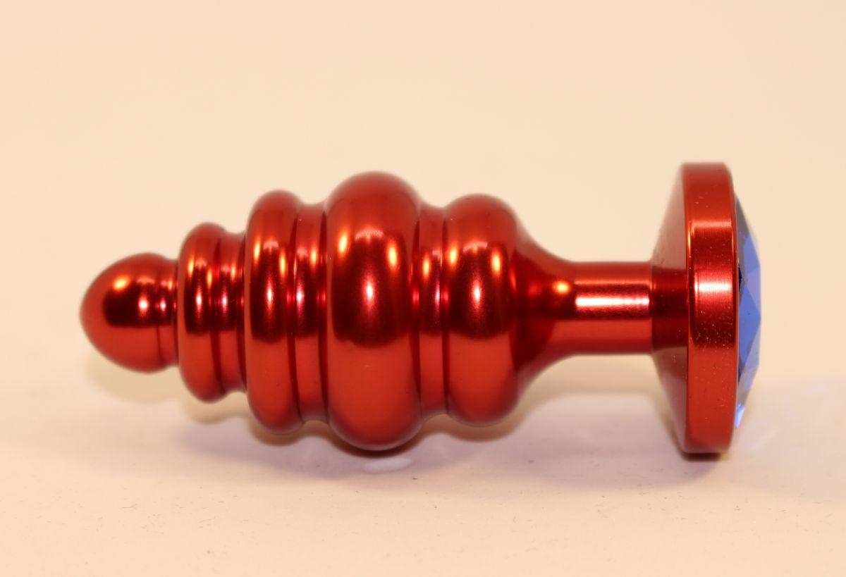 Купить Красная фигурная пробка с синим стразом - 7,3 см. 4sexdreaM по лучшей цене с доставкой - секс-шоп Ynunu.ru
