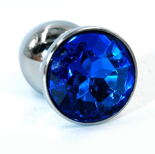 Малая анальная пробка из алюминия с синим кристаллом - 7 см.
