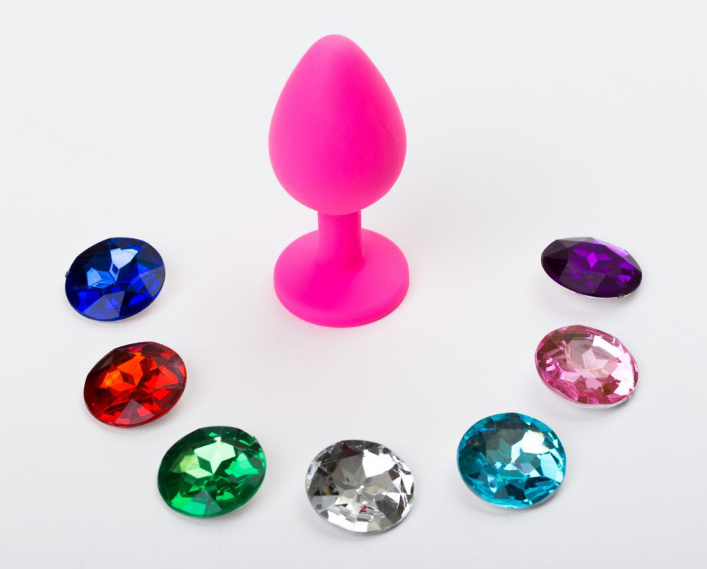 Розовая силиконовая пробка с 7 сменными кристаллами - 8,2 см.