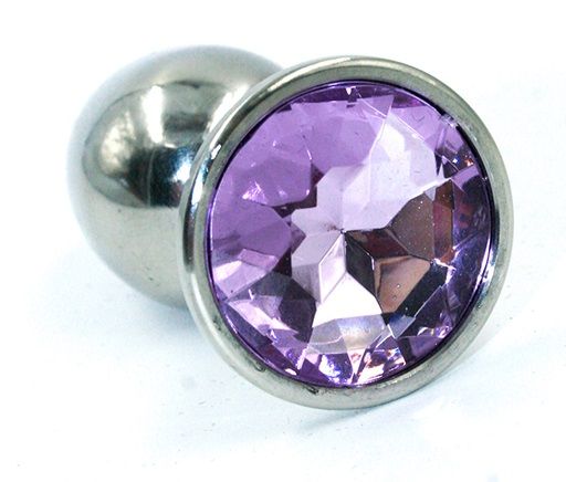 Серебристая анальная пробка с сиреневым кристаллом - 8 см.