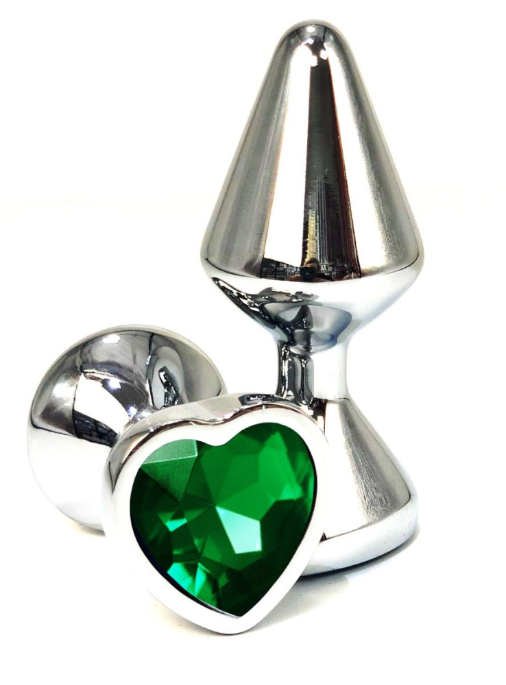 Купить Серебристая анальная пробка с зеленым кристаллом-сердцем - 8 см. Vandersex по лучшей цене с доставкой - секс-шоп Ynunu.ru