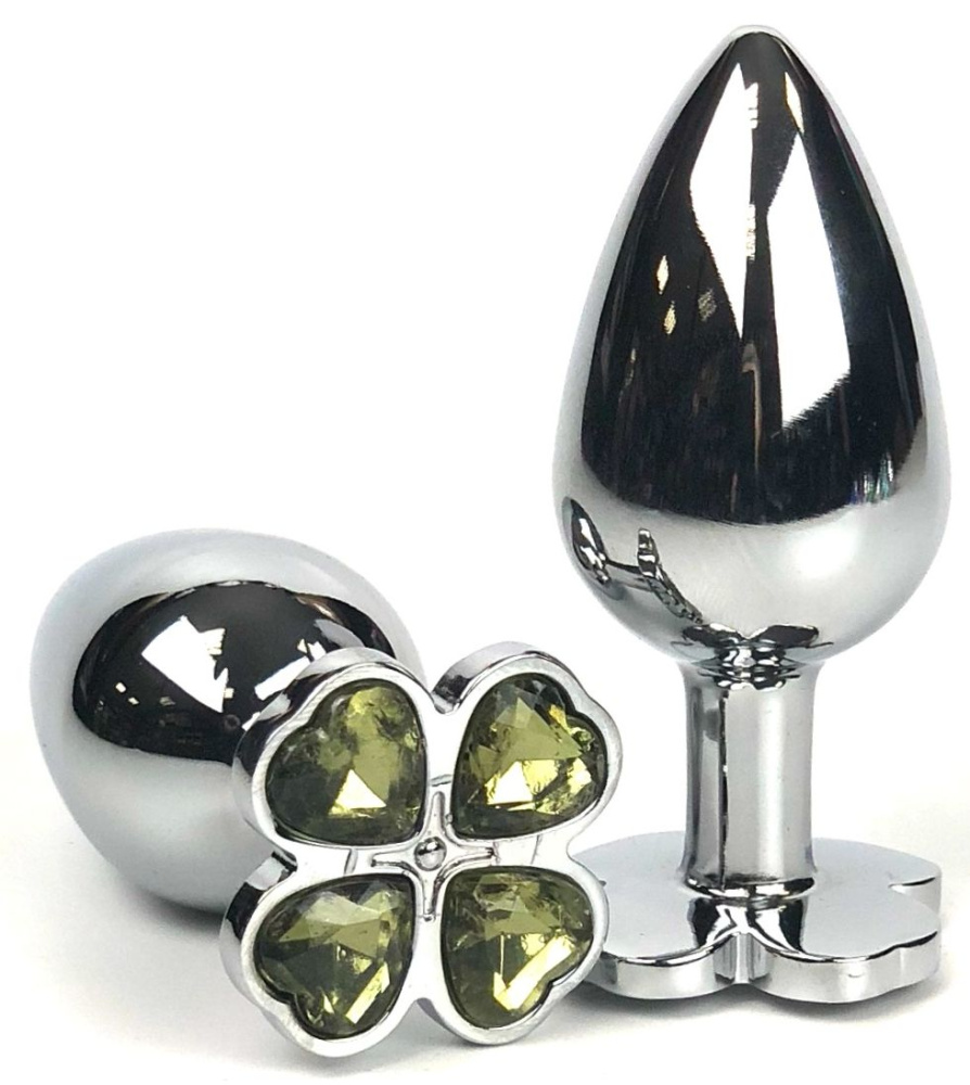 Купить Серебристая анальная втулка с клевером из желтых кристаллов - 9 см. Vandersex по лучшей цене с доставкой - секс-шоп Ynunu.ru