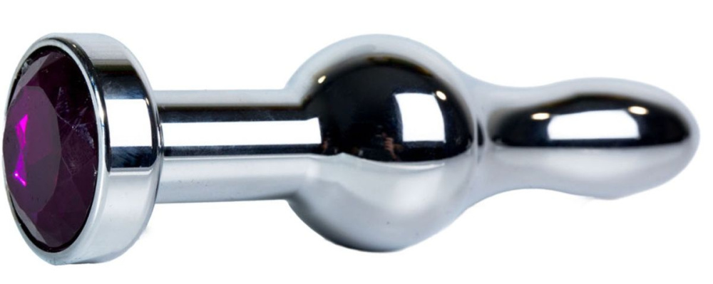 Купить Серебристая каплевидная анальная пробка с фиолетовым кристаллом - 10,5 см. Vandersex по лучшей цене с доставкой - секс-шоп Ynunu.ru