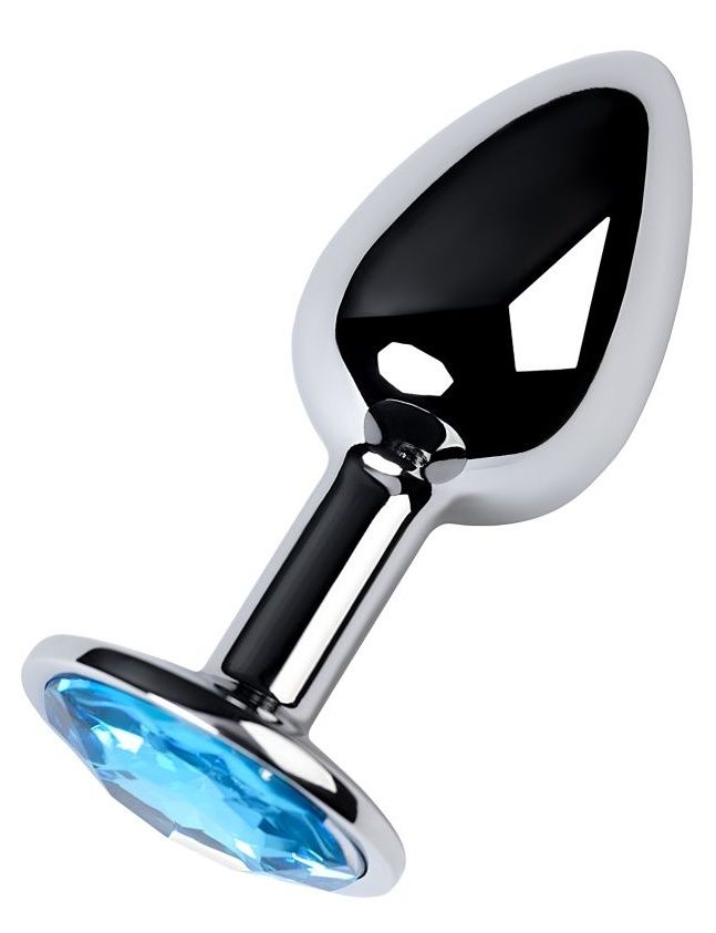 Купить Серебристая конусовидная анальная пробка с голубым кристаллом - 7 см. ToyFa по лучшей цене с доставкой - секс-шоп Ynunu.ru