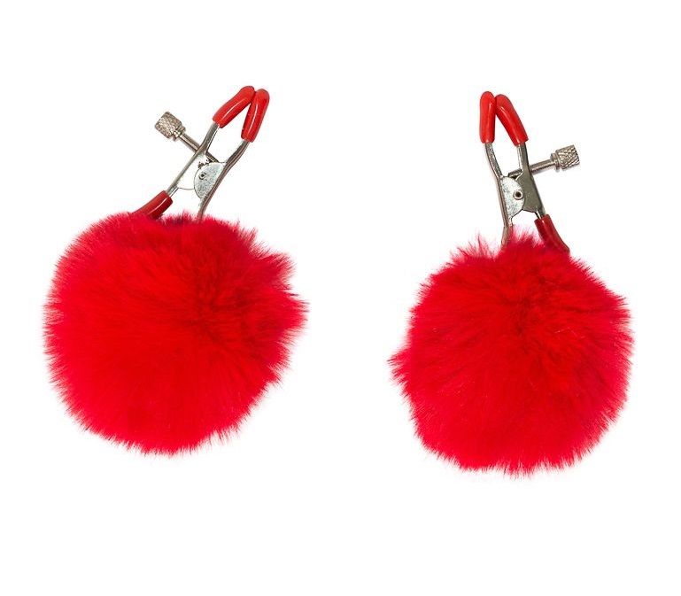 Зажимы на соски Angelic с красными меховыми шариками
