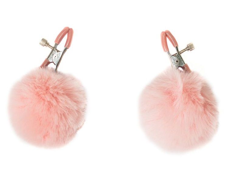 Зажимы на соски Angelic с розовыми меховыми шариками