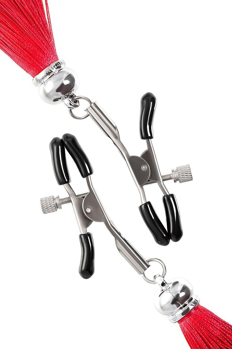 Купить Зажимы на соски «Прищепки» с красными кисточками из шелка Pecado по лучшей цене с доставкой - секс-шоп Ynunu.ru