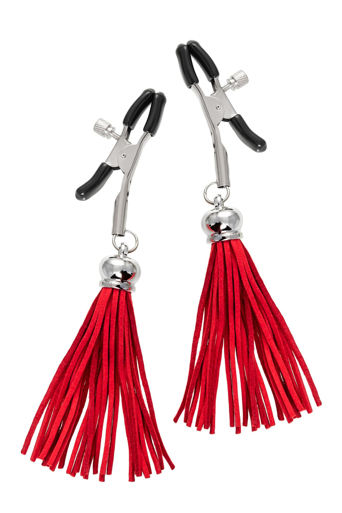 Купить Зажимы на соски «Прищепки» с красными кисточками из замши Pecado по лучшей цене с доставкой - секс-шоп Ynunu.ru