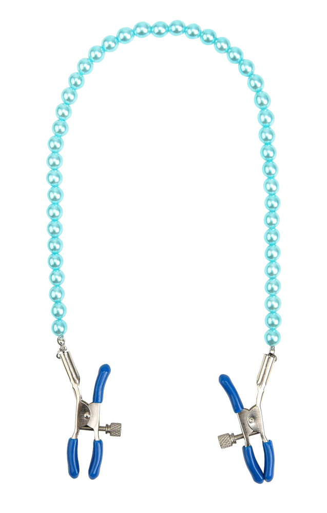 Купить Зажимы на соски с голубыми бусами Kanikule по лучшей цене с доставкой - секс-шоп Ynunu.ru