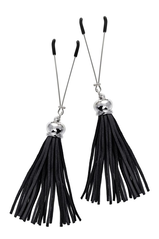 Попробуйте новые, дерзкие ощущения глубокого наслаждения! Зажимы-вилки от Pecado гарантируют смешение ярких чувств от тактильного контакта с нежной кожей сосков. Зажимы выполнены из высококачественных материалов. Металлическая часть компактная, приятная на ощупь. На концах черные резиновые наконечники, для безопасного воздействия на эрогенные зоны. Интенсивность сжатия аксессуара регулируется миниатюрными колечками. В зависимости от личных предпочтений и сценария игры, можно выбрать легкое пощипывание, или сильное сдавливание. Бахрома из натуральной замши, черного цвета, добавляет манящую красоту смелому атрибуту. При каждом соблазнительном покачивании груди, кисточки движутся в пикантном ритме. Также подходит для стимуляции и возбуждении в области половых губ и клитора.