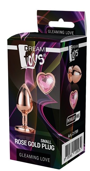 Купить Золотистая анальная втулка с кристаллом-сердечком розового цвета - 7,1 см. Dream Toys по лучшей цене с доставкой - секс-шоп Ynunu.ru