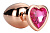 Золотистая анальная втулка с кристаллом-сердечком розового цвета - 7,1 см.