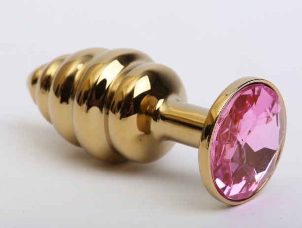 Купить Золотистая рифлёная пробка с розовым стразом - 8,2 см. 4sexdreaM по лучшей цене с доставкой - секс-шоп Ynunu.ru