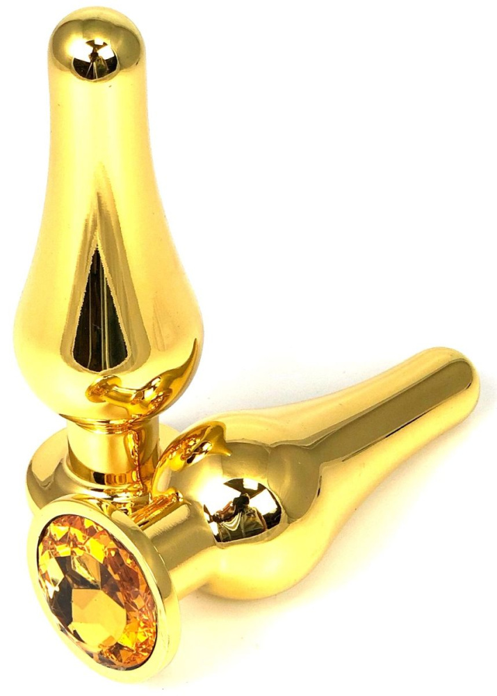 Купить Золотистая удлиненная анальная пробка с оранжевым кристаллом - 11,5 см. Vandersex по лучшей цене с доставкой - секс-шоп Ynunu.ru