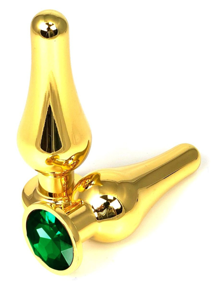 Купить Золотистая удлиненная анальная пробка с зеленым кристаллом - 11,5 см. Vandersex по лучшей цене с доставкой - секс-шоп Ynunu.ru