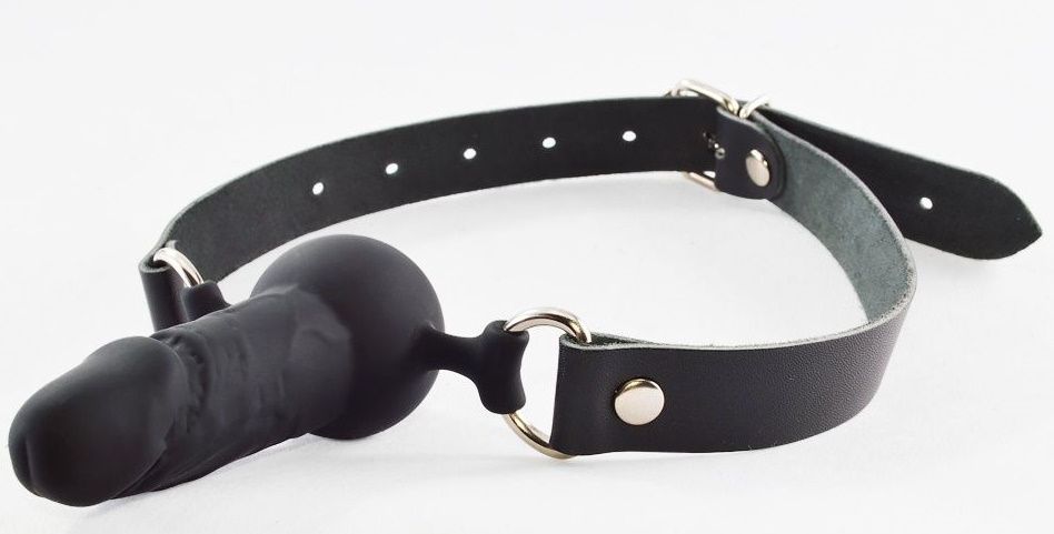 Черный кляп-шар с фаллосом на регулируемых ремешках