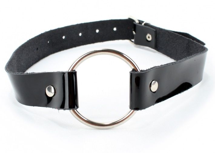 Купить Кляп-кольцо на чёрных лаковых ремешках БДСМ Арсенал по лучшей цене с доставкой - секс-шоп Ynunu.ru