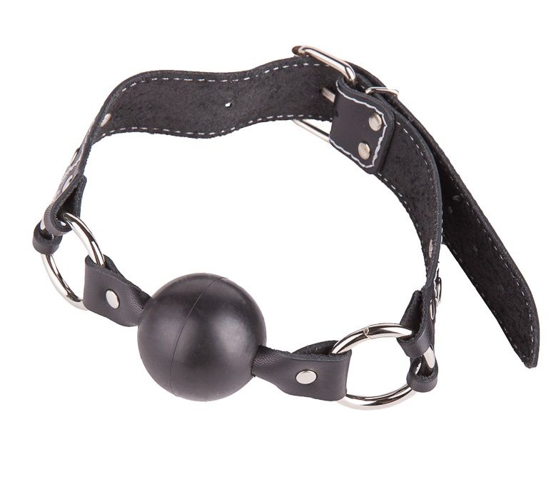 Кляп-шар классической формы и конструкции из натуральной высококачественной кожи. По периметру ремешков проходит декоративная белая строчка. Сферическая упругая часть кляпа изготовлена из современного материала ТЭП, который соответствует гигиеническим нормам и прост в уходе. Регулировка размера и фиксация производится при помощи пряжки. Вся металлическая фурнитура имеет никелевое покрытие. Ширина ремешков - 2,5 см.