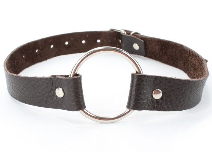 Купить Коричневый кожаный кляп с металлическим кольцом БДСМ Арсенал по лучшей цене с доставкой - секс-шоп Ynunu.ru