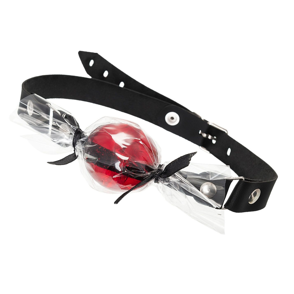 Красный кляп-леденец на кожаных ремешках со вкусом виски