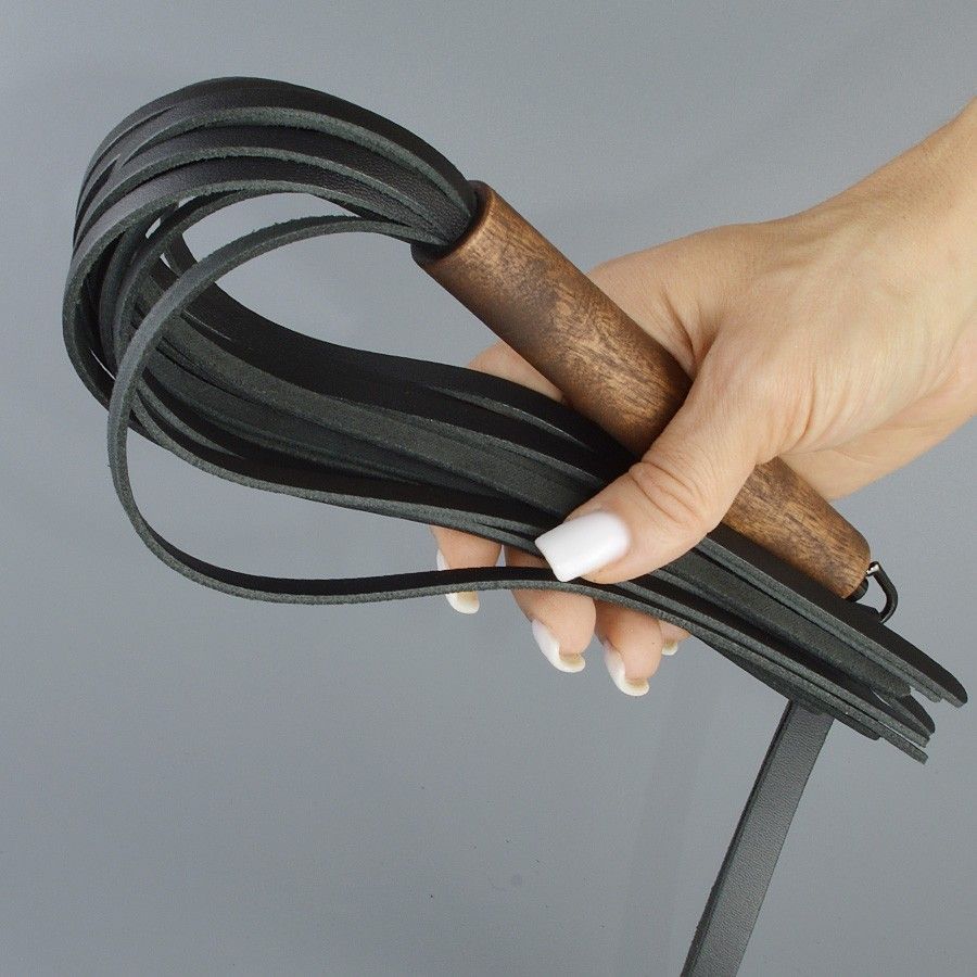 Черная кожаная плеть с деревянной рукоятью - 44 см.