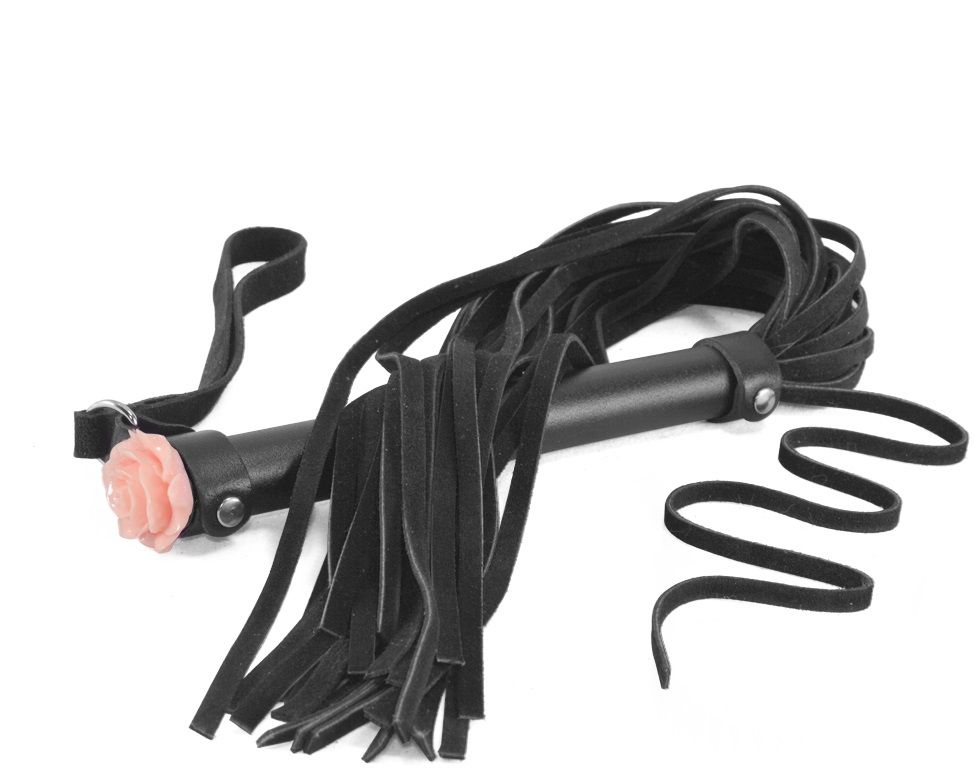 Черная многохвостая плеть с наконечником-розой - 57 см.