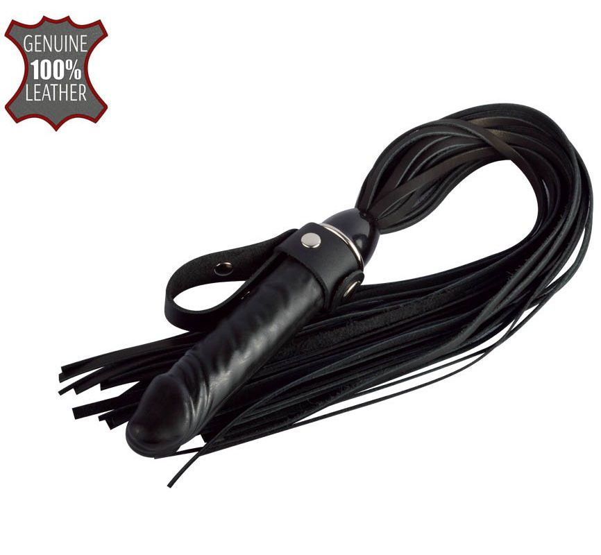 Необычный сексуальный атрибут в виде кожаной плети с рукоятью в виде фаллоса из натурального латекса. Плеть состоит из гладких хвостов натуральной кожи, которые образуют единый пучок, способный качественно разогреть тело партнёра. Рукоять-фаллос изготовлен из натурального латекса и имеет рельефную реалистичную форму. Универсальность конструкции секс-игрушки, значительно разнообразит интимные отношения и придаст им нотку пикантности и чувственности, что сделает её любимым сексуальным атрибутом Вашей пары. Рабочая длина рукояти - 14 см., диаметр - 3,2 см.