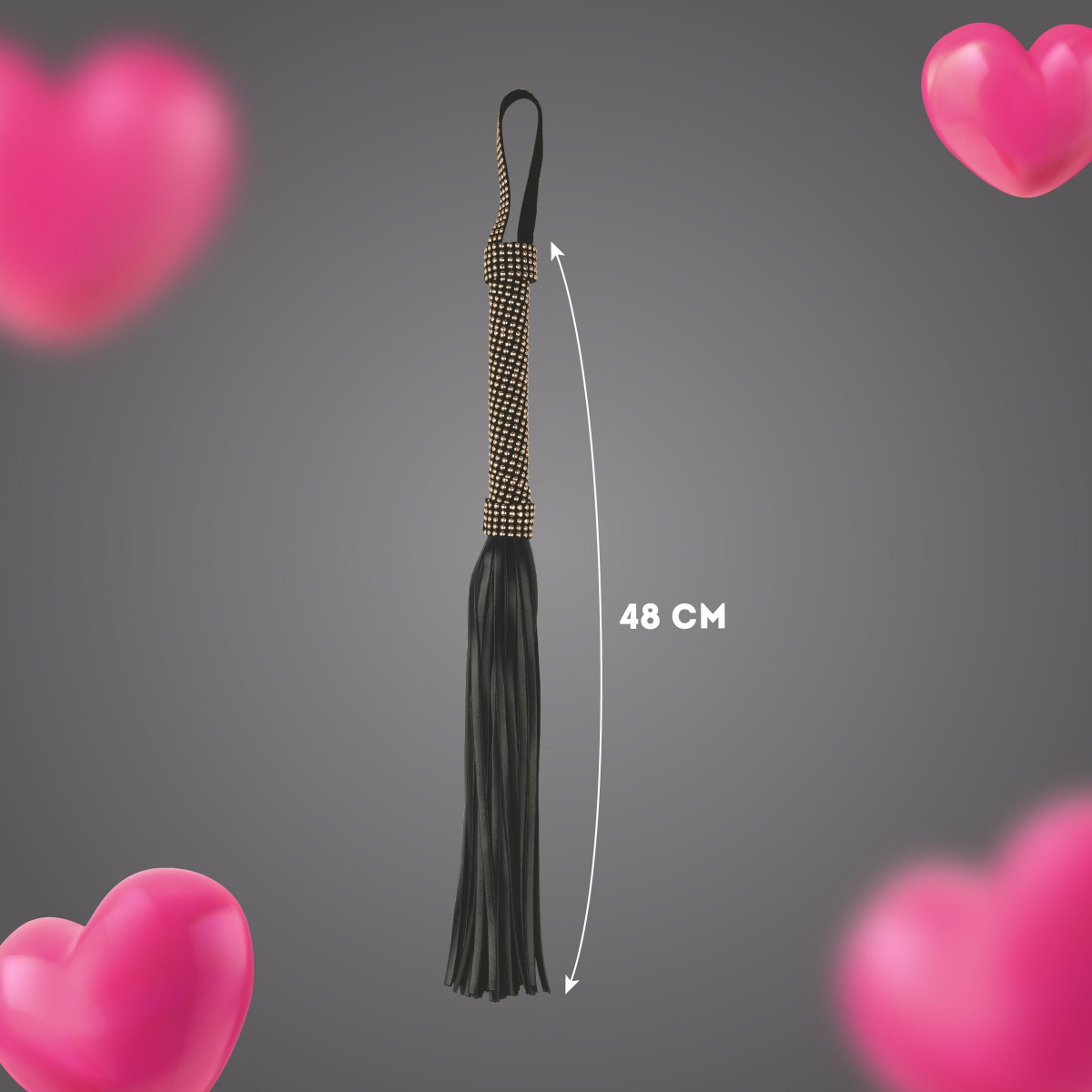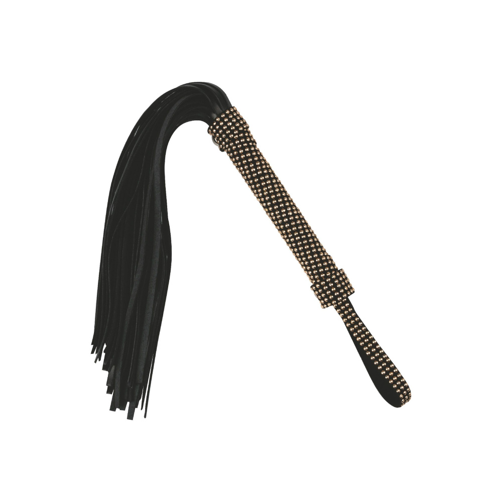 Черная плеть с заклепками на рукояти - 48 см.