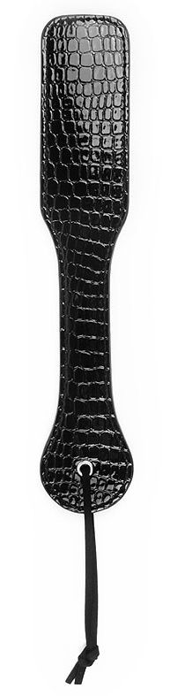 Великолепный БДСМ аксессуар для любителей нестандартных эротических развлечений.  Шлёпалка подарит множество ярких, незабываемых эмоций. Форма изделия с широкой рабочей поверхностью и удобной ручкой позволит использовать его максимально эффективно. Петлю на конце секс-игрушки можно намотать на запястье. Интимный аксессуар идеально подходит для разогрева перед интимной близостью, а также в качестве элемента в ролевой игре. Поверхность шлёпалки выполнена под кожу рептилии.