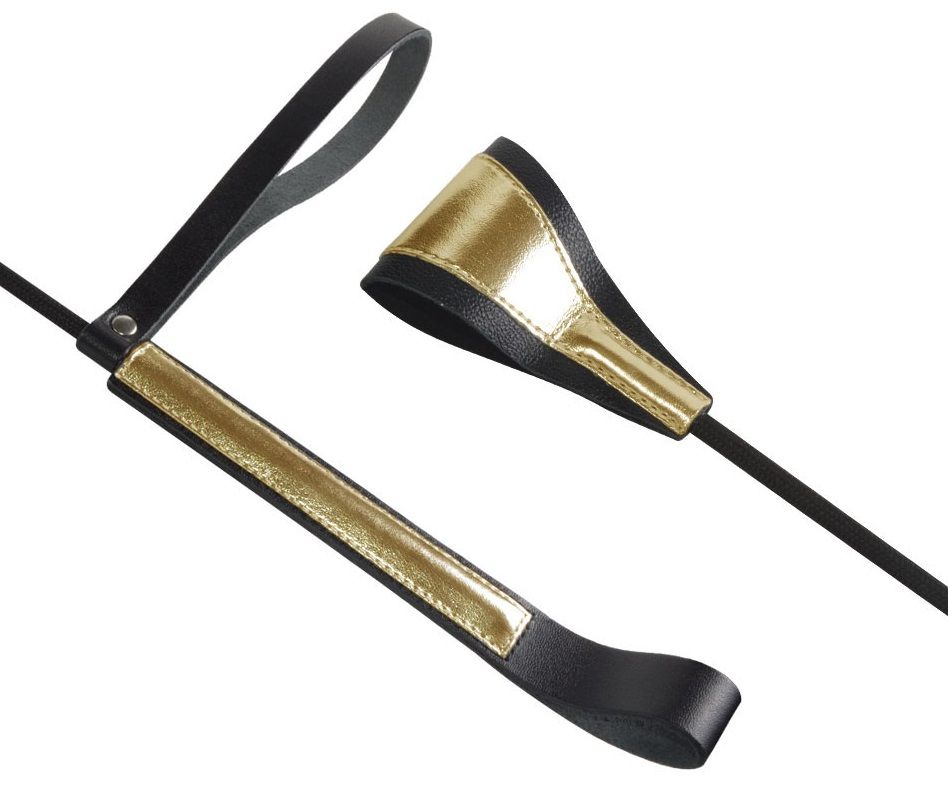 Купить Черно-золотистый стек с хлопушкой из кожи - 69 см. Sitabella по лучшей цене с доставкой - секс-шоп Ynunu.ru