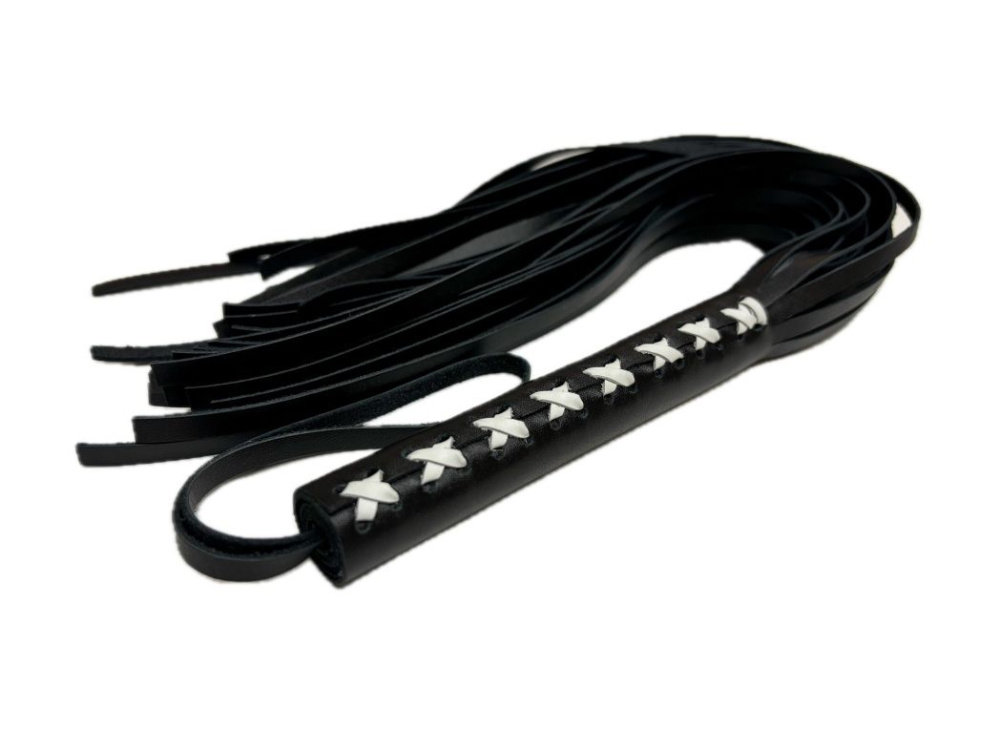 Плеть из натуральной кожи Sex Game - уникальная модель, выполненная из цельного куска гладкой натуральной кожи высокого качества, в классическом черном цвете. Плеть очень пышная и богатая, в ней 50 хвостов! На рукоятке находится плетение, выполненное белой кожей, что придает особый шарм, Благодаря своей цельной конструкции, данная плеть прослужит Вам долго, хвосты не оторвутся и сохранят свой благородный вид, аксессуар очень надежный и красивый. Для удобства на рукоятке имеется кожаная петелька. Длина хвостов - 40 см.
