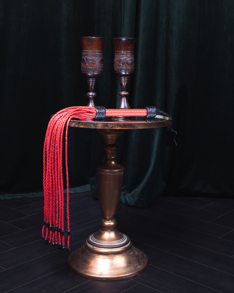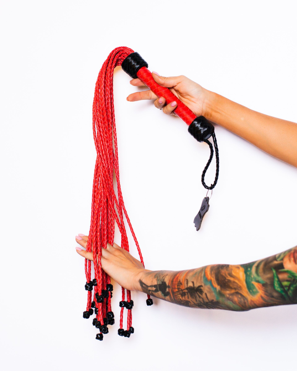 Плетеный флоггер из натуральной кожи премиум качества с бусинами на кончиках хвостов для ускорения удара. Флоггер имеет удобную рукоять с с петлей для фиксации изделия на запястье. Флоггер подходит для БДСМ практик, игровых наказаний, и для болевого воздействия. Для того, чтобы можно было рассмотреть вид и качество товара, он упакован в прозрачный пакет. Длина ручки - 23 см.