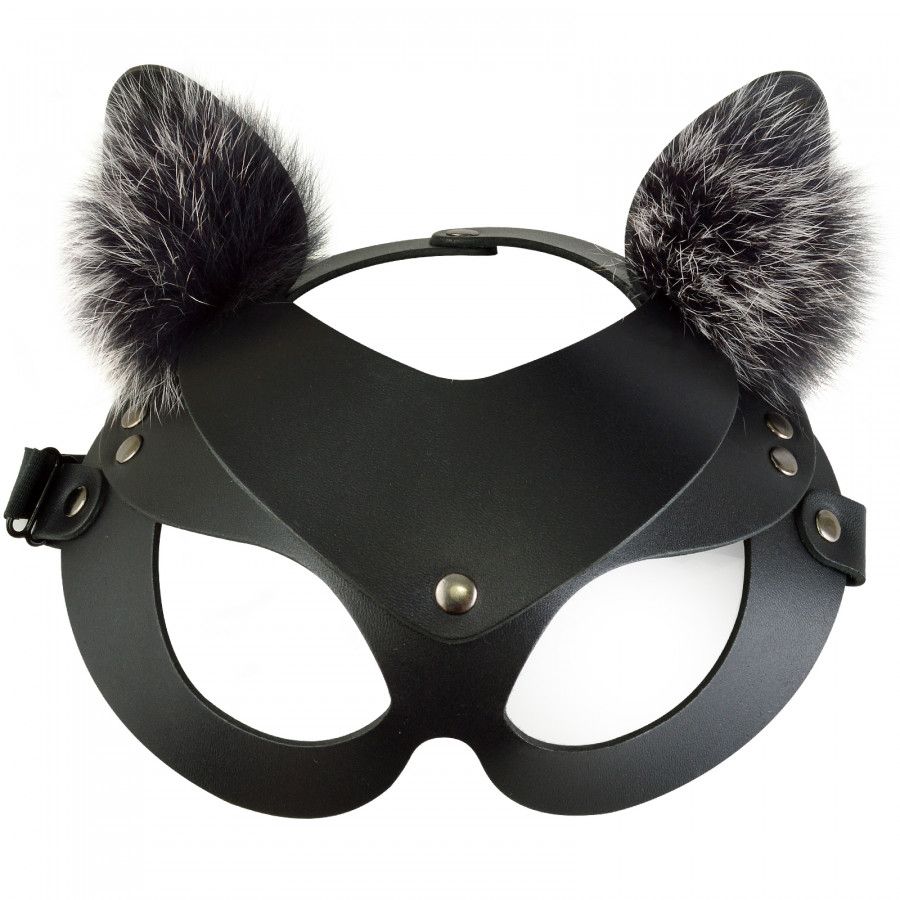 Купить Черная кожаная маска Кошечка с мехом Sitabella по лучшей цене с доставкой - секс-шоп Ynunu.ru