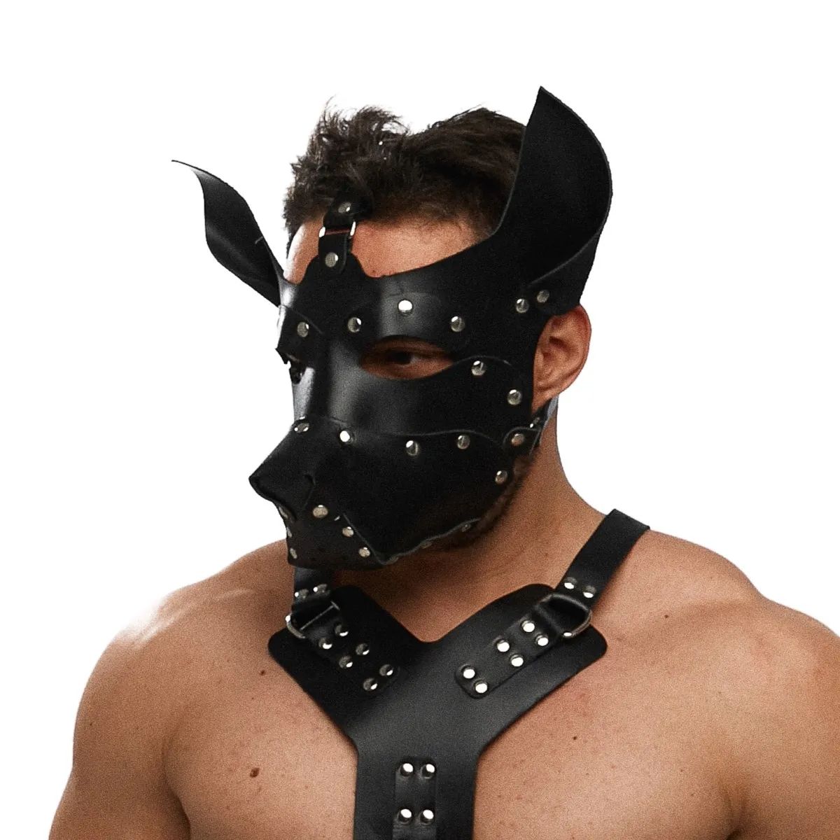 Купить Черная кожаная маска «Собака» Crazy Handmade по лучшей цене с доставкой - секс-шоп Ynunu.ru