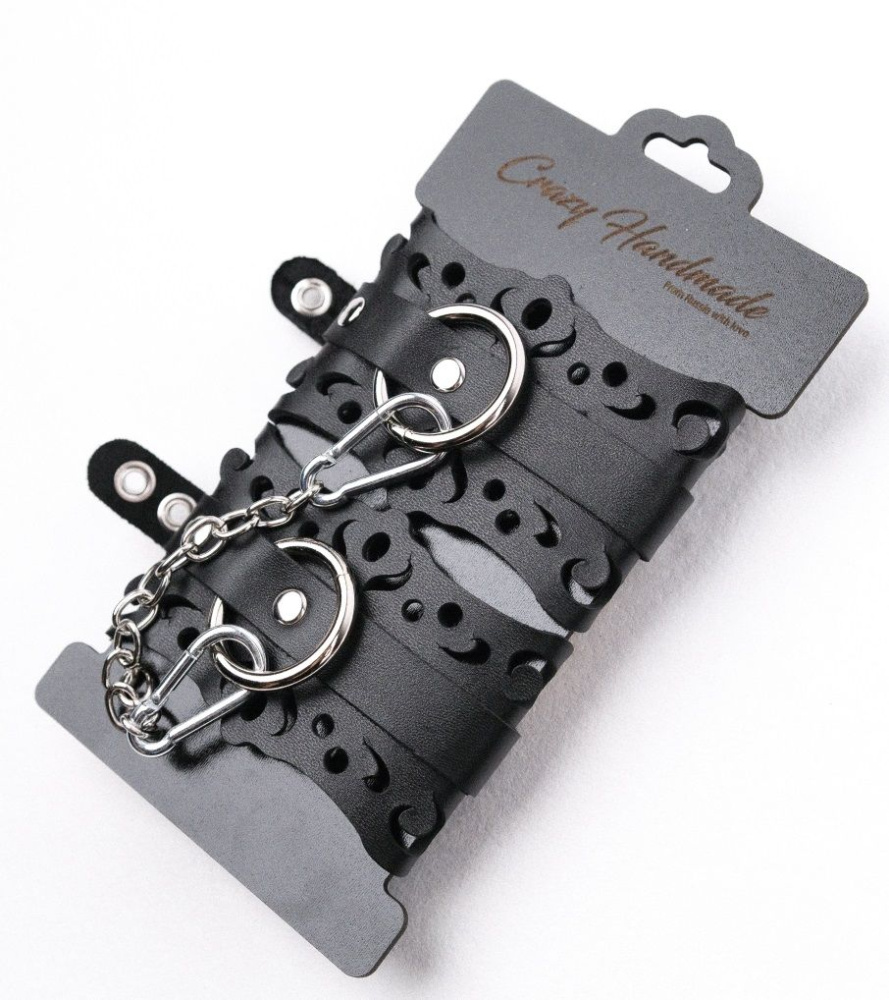 Купить Ажурные наручники из черной кожи Crazy Handmade по лучшей цене с доставкой - секс-шоп Ynunu.ru