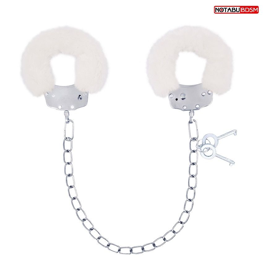 Купить Белые меховые оковы на сцепке с ключиками Notabu по лучшей цене с доставкой - секс-шоп Ynunu.ru