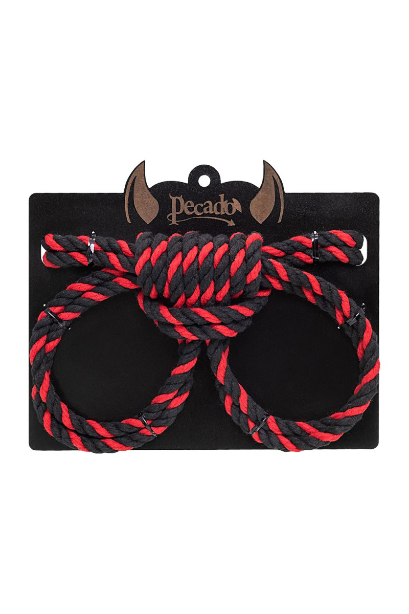 Купить Черно-красные наручники-оковы ’’Узел-омега’’ из хлопковой веревки Pecado по лучшей цене с доставкой - секс-шоп Ynunu.ru