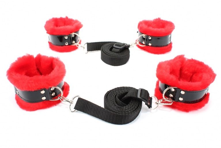 Черно-красный набор для фиксации на кровати с мехом