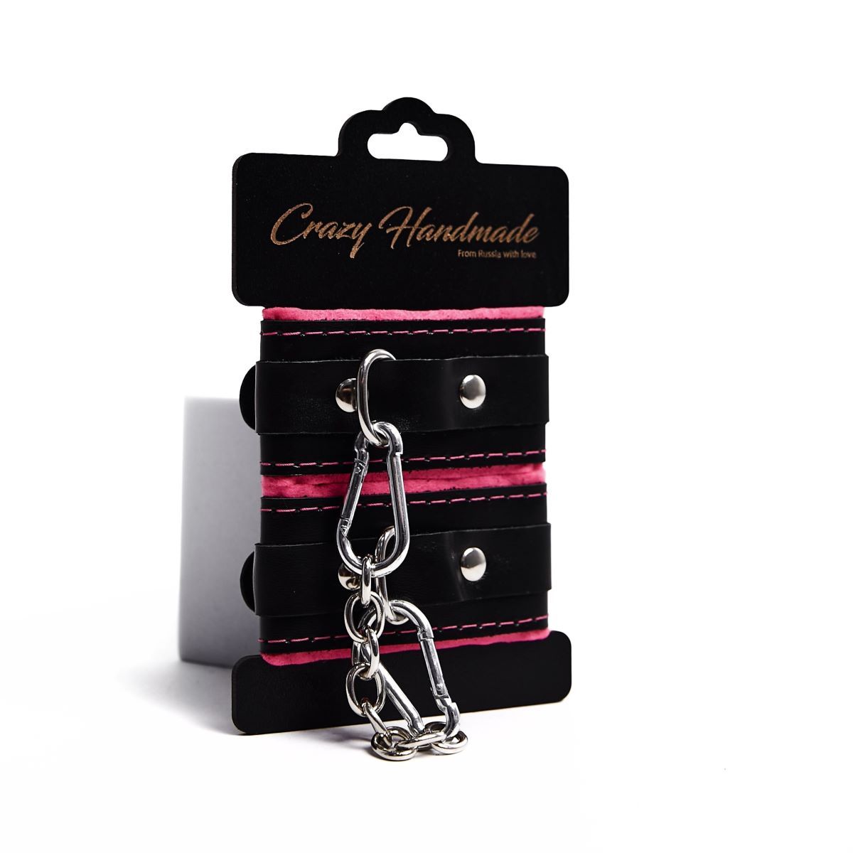 Купить Черно-розовые скругленные наручники с мягкой подкладкой Crazy Handmade по лучшей цене с доставкой - секс-шоп Ynunu.ru