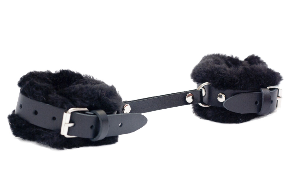 Купить Черные базовые наручники из кожи с опушкой Лунный свет по лучшей цене с доставкой - секс-шоп Ynunu.ru