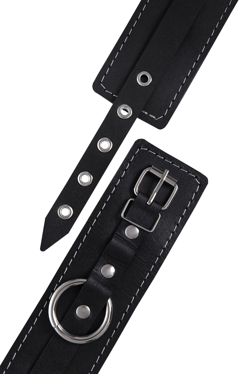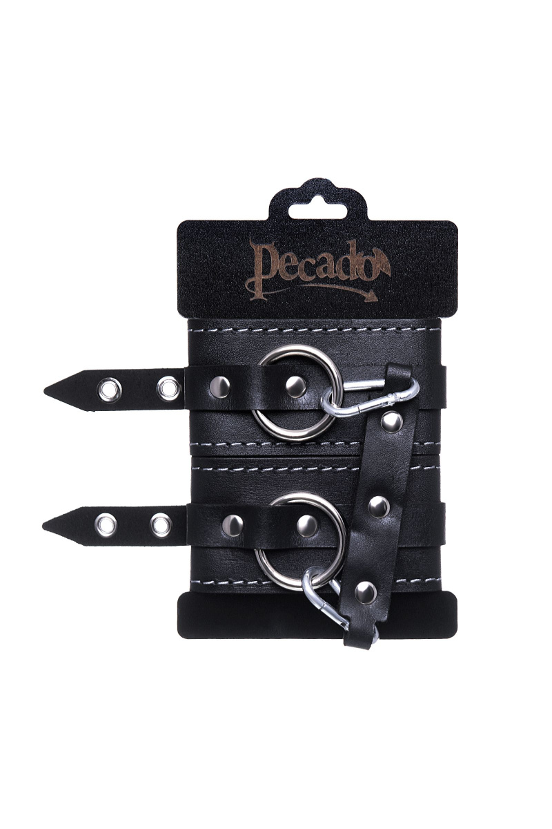 Купить Черные двухслойные кожаные оковы с белой строчкой Pecado по лучшей цене с доставкой - секс-шоп Ynunu.ru