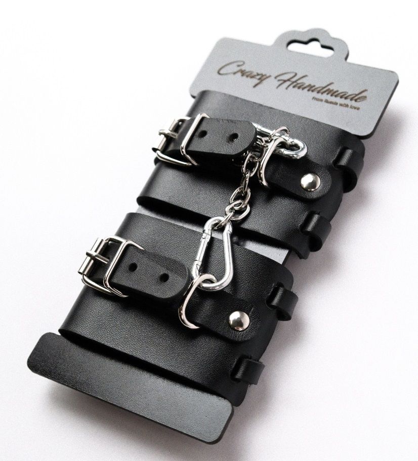 Купить Черные кожаные наручники с ремешками Crazy Handmade по лучшей цене с доставкой - секс-шоп Ynunu.ru