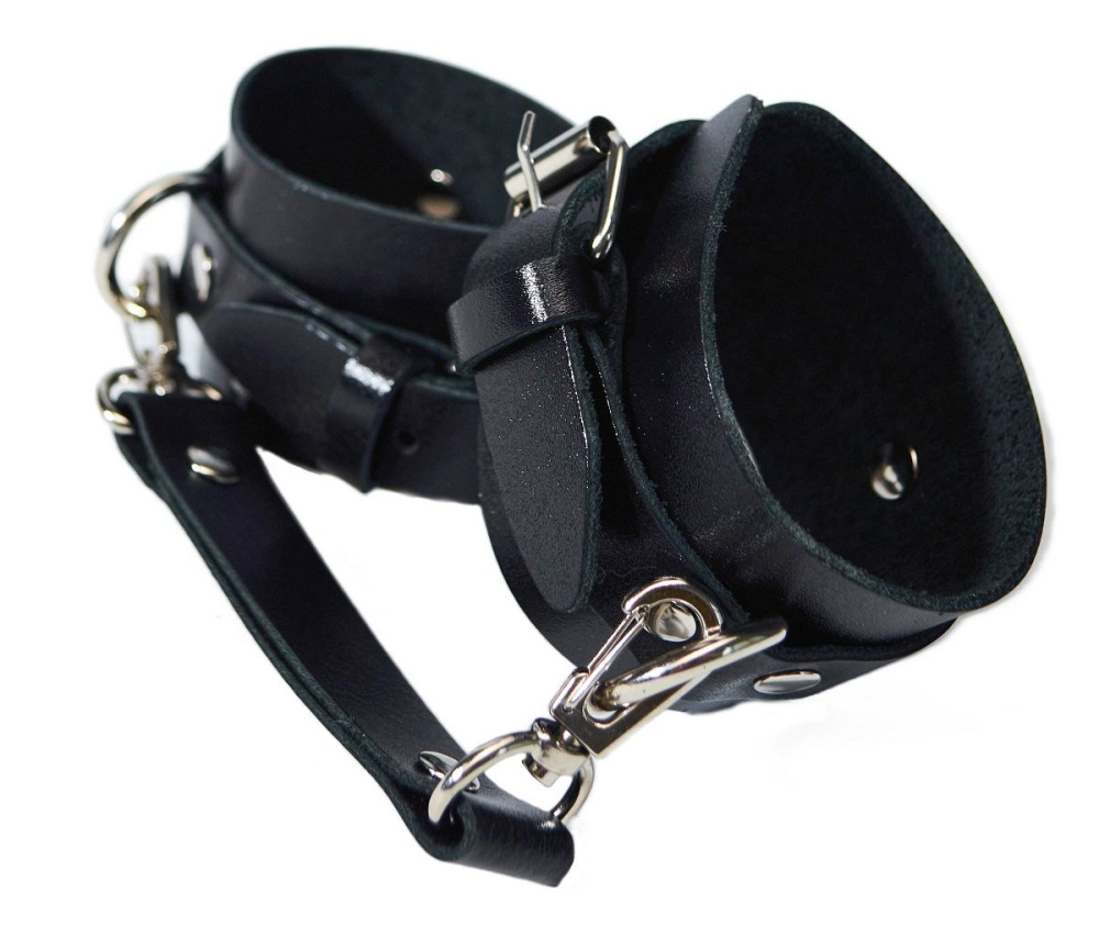 Черные кожаные наручники с соединением на карабинах