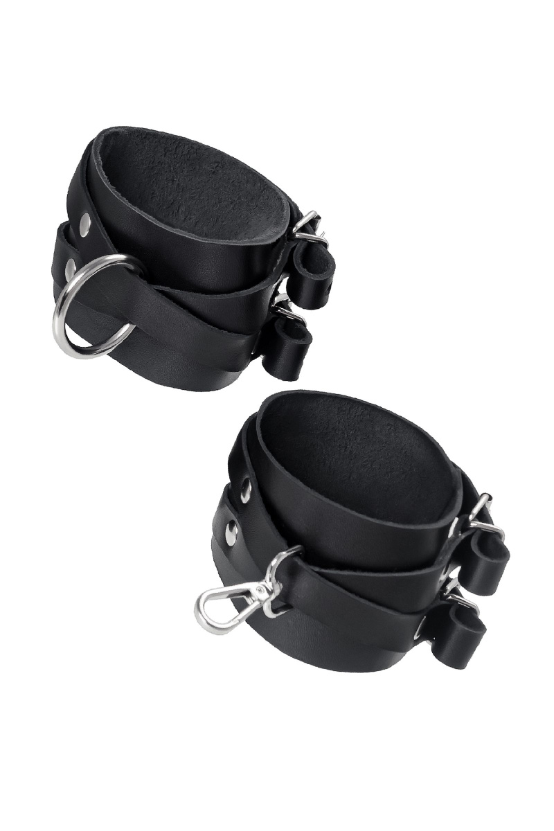 Черные кожаные оковы с двумя перекрёстными ремешками